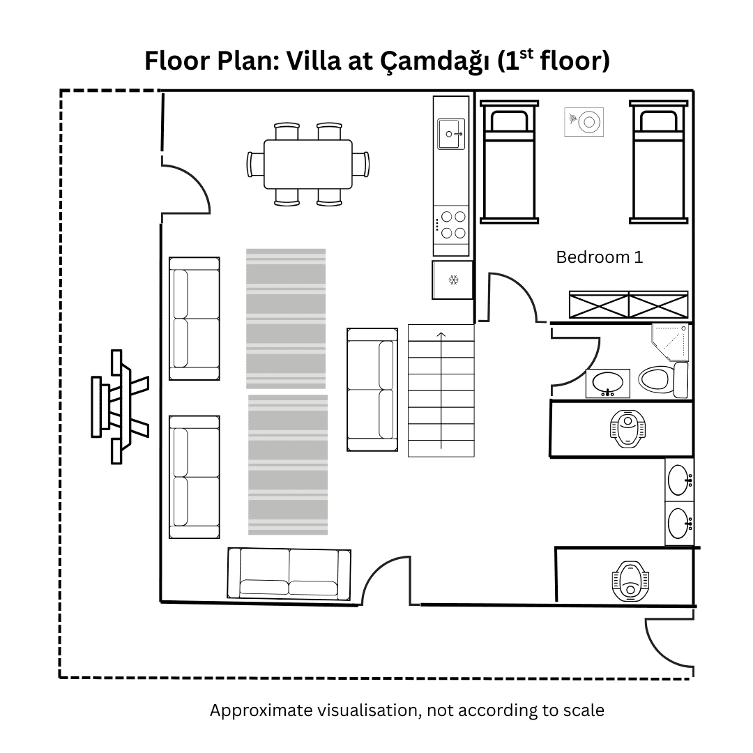 • In Çamdağı: villas by Istanbul Foundation for Science and Culture – 3 bedrooms (2 single beds per bedroom) with large living room, a fully equipped kitchen, large veranda, one full bathroom and two “a la turka” (eastern) toilets.