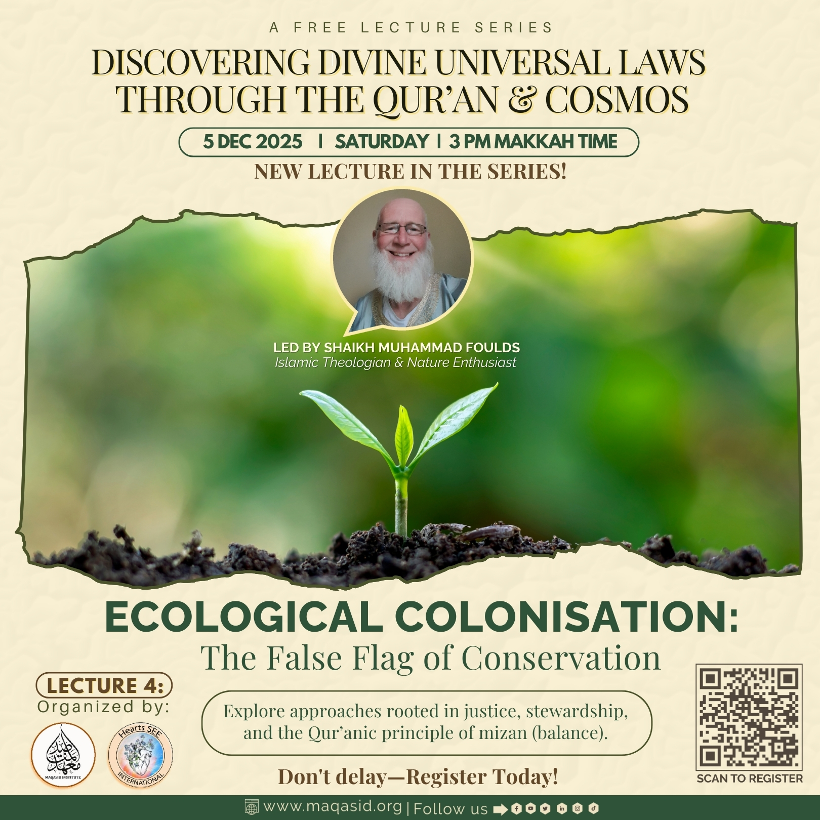 The "Discovering Divine Universal Laws through the Qur'an and Cosmos" Free Lecture Series continues with Lecture 4: Ecological Colonisation. This session examines the colonial mindset that actively disrupts the mizan (balance) established by the Divine in creation. We will trace the roots of this disruption from early Western expansion right through to the mechanisms of...